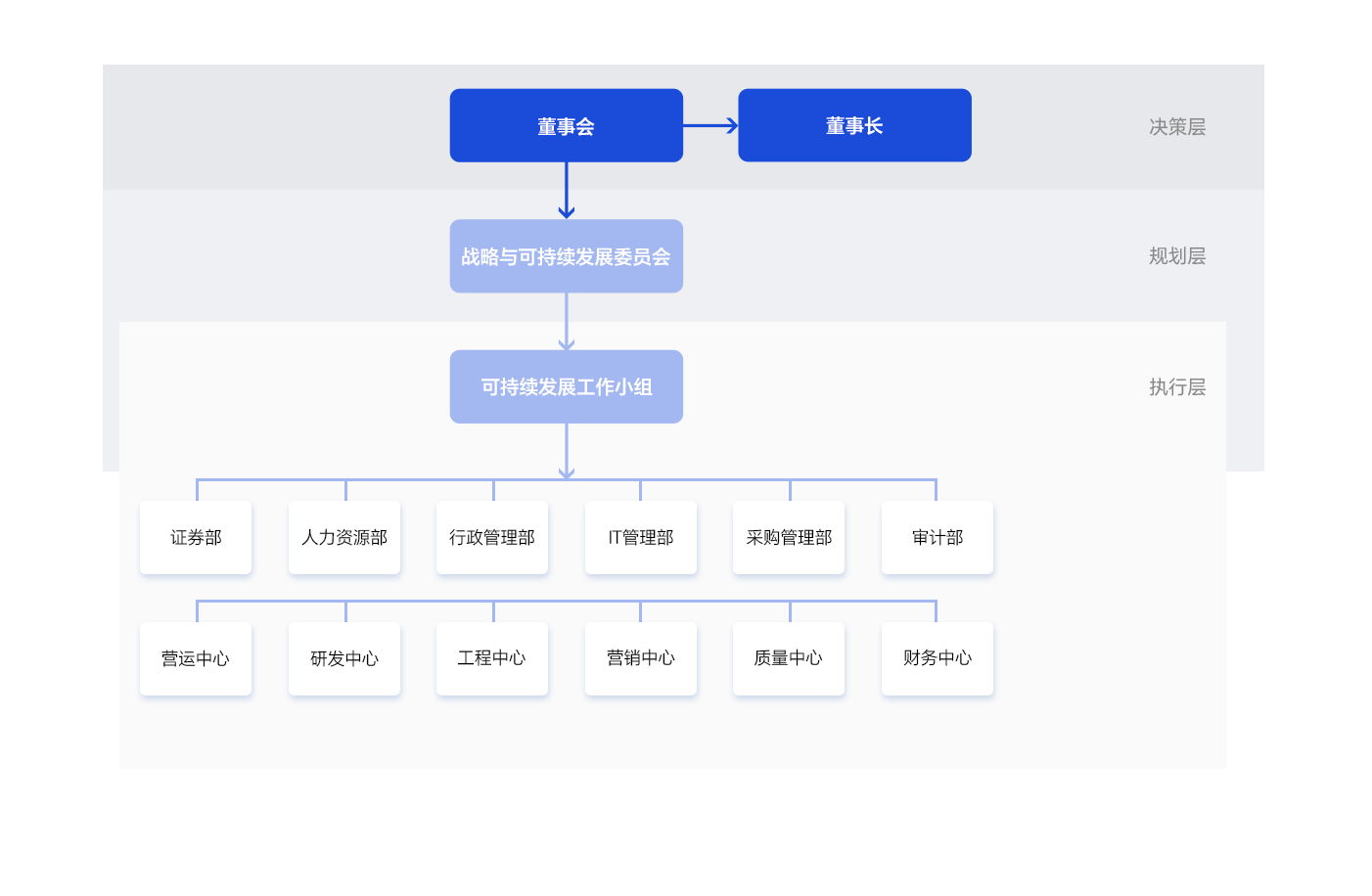 由董事會、戰(zhàn)略與可持續(xù)發(fā)展委員會、可持續(xù)發(fā)展工作小組匹配“決策層-規(guī)劃層-執(zhí)行層”,各層級職責明晰,確保公司在業(yè)務決策過程中能夠充分考慮ESG相關(guān)因素的影響、風險及機遇。